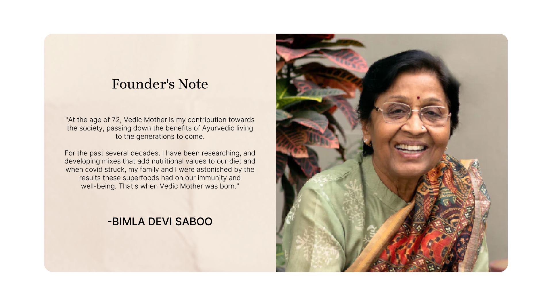 Over the years, they relied on these age-old remedies instead of modern medicines, and Dadi inspired everyone around her to embrace its healing powers.Vedic Mother doesn’t aspire to be just another brand, it carries a much bigger dream: to build a happier, healthier India.
