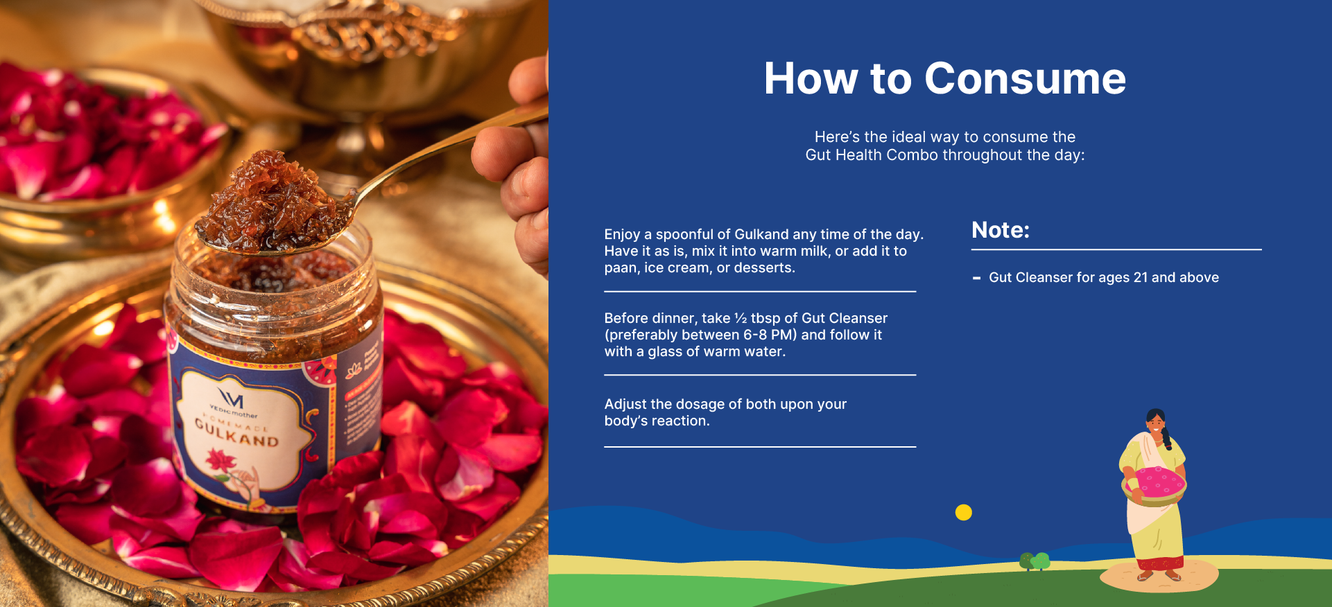 β The Homemade Gulkand is the ultimate Ayurvedic solution for acidity, stomach heat, and high pitta. Crafted with premium Indian Desi Gulab and Dhaagewali Mishri, itβs sun-cooked for a month as according to Ayurvedic traditions to lock in all its healing properties.