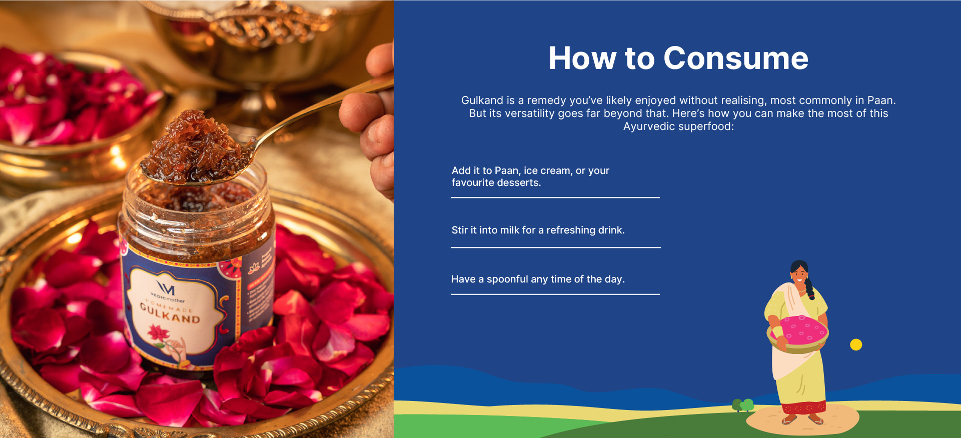 ✅ Made with the freshest sunbaked Indian Desi Gulab and Dhaagewali Mishri.